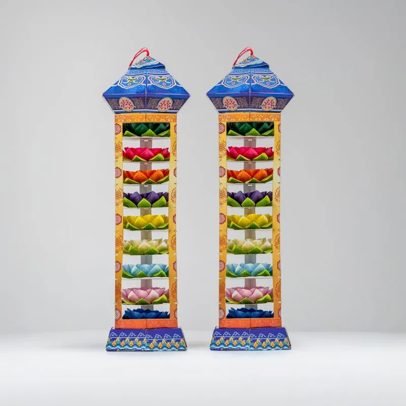 蓮花塔象徵引領亡者安然往生極樂淨土,寓意淨化身心、超脫塵緣與圓滿解脫。自古以來,蓮花被視為清淨、高雅與吉祥的象徵,代表在塵世紛擾中仍能綻放純淨本性,寓意亡者得以遠離世間苦惱,放下牽掛,安穩踏上通往極樂世界的道路。