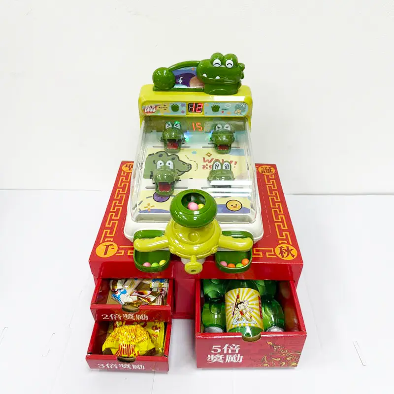 商品內容:三太子鱷魚機玩具、彈珠汽水、糖果、餅乾